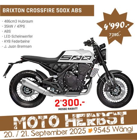 Wenn die Tage kürzer werden, beginnt bei uns der Season-End Verkauf. Profitiere von sensationellen Rabatten auf Lagerfahrzeuge und entdecke bereits jetzt die Neuheiten 2026! Besuche uns am Moto-Herbst in Wängi!